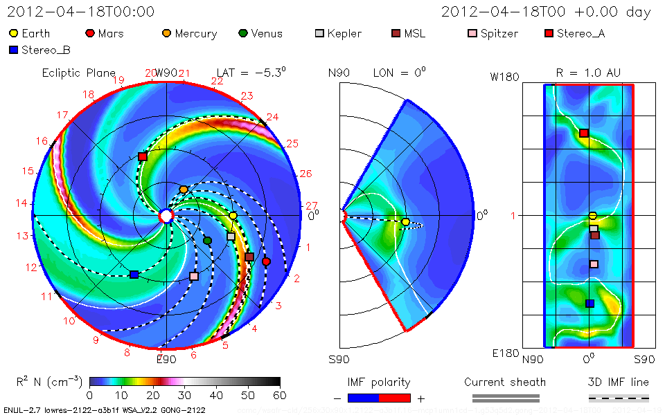 Secondo le previsioni, le CME colpiranno Mercurio, la Terra, Marte fino anche Curiosity, il rover in viaggio verso Marte. L'impatto sul nostro pianeta, è previsto per il 22 aprile intorno alle 00:50 UT, dovrebbe essere minimo con aurore probabili solo alle latitudini più alte.